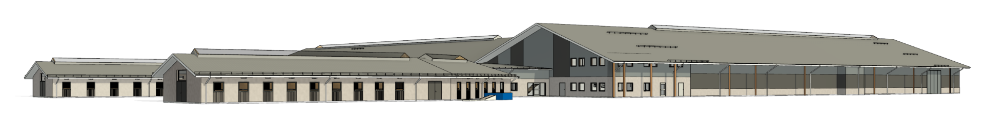 Projektet omfattar nybyggnation av stall och två ridhus som binds samman med personal- och administationsutrymmen.